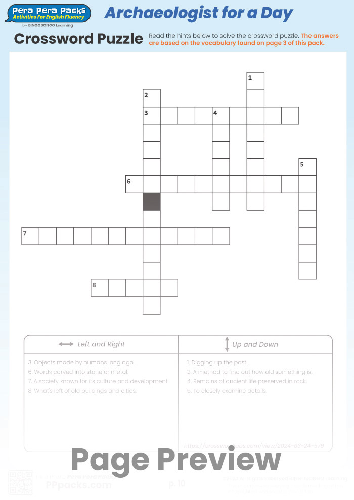 - Crossword puzzles to build vocabulary related to archaeology and ancient civilizations.