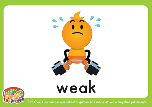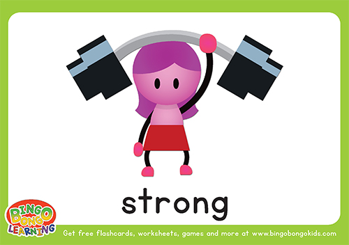 Download this free ESL printable flashcard pack, to teach your students the 10 How is he/she? words from the BINGOBONGO Learning Level 1 Curriculum. These flashcards are great for teaching students how to describe people, and to talk about how they feel. The words included in this pack are: tall, short, thick, thin, strong, weak, cool, cute, good, and bad.